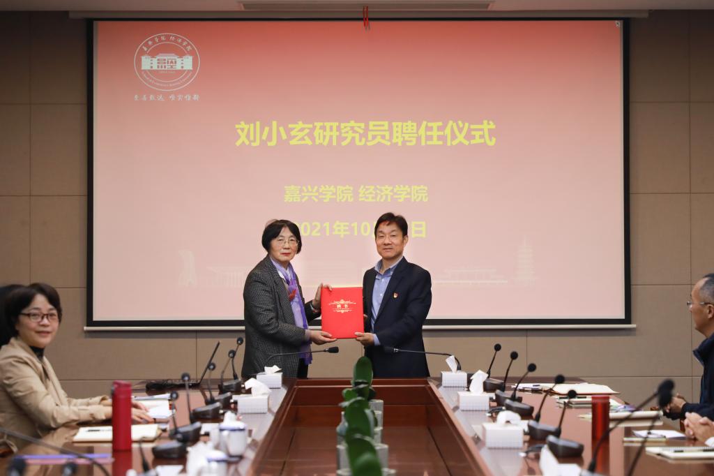 教师、联培研究生参加聘任仪式。仪式上,卢新波向刘小玄研究员颁发聘书,聘任刘小玄研究员为嘉兴学院特聘教授,作为麻豆tv