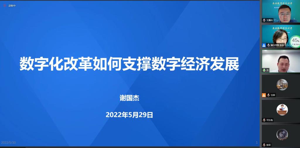 、嘉兴市经济学会、嘉兴市高层次人才联谊会以线上会议形式联合举办第1期“南湖数字经济讲堂”。数字浙江技术运营有限公司项目总监、解决方案架构师、省重点实验室方向负责人谢国杰先生应邀作学术报告,麻豆tv