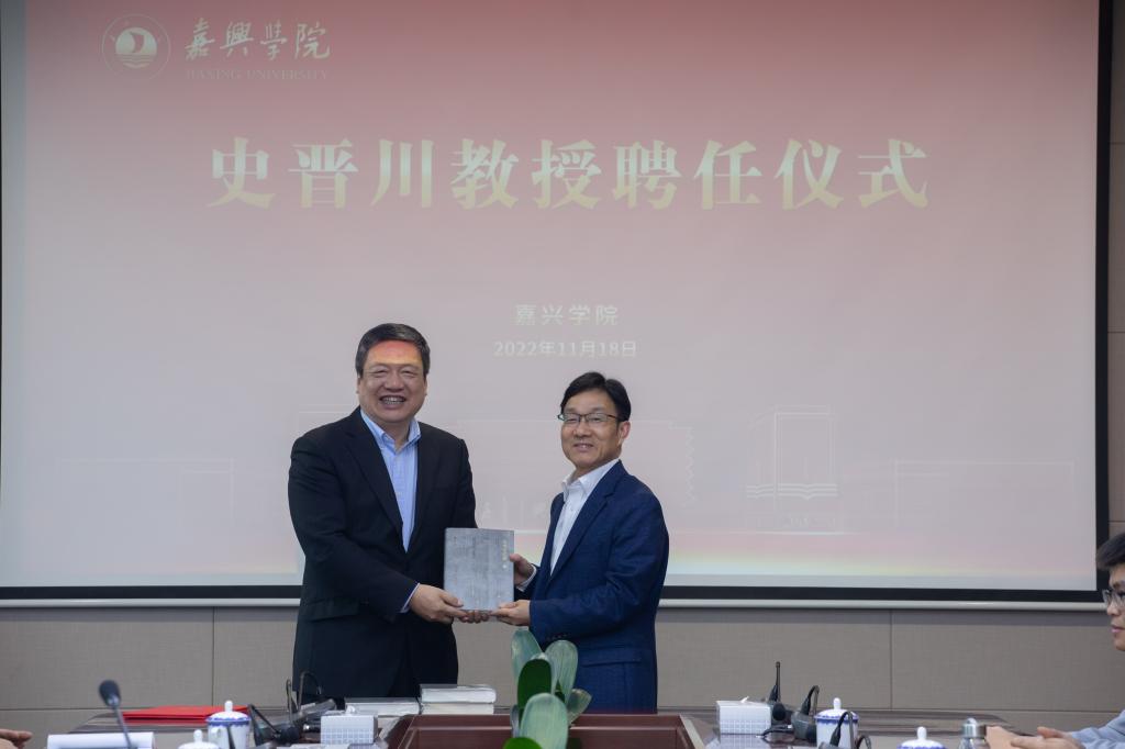 的关键时期,迫切需要像史晋川教授这样的国家级高层次人才的加入和支持,作为著名经济学家、民营经济学术名家和决策咨询专家,史晋川教授的加盟给嘉兴学院经管学科发展注入了强劲的动力,为学校建设有特色、善创新的一流应用型综合性大学创造了有利条件。他希望,史晋川教授能在学科建设、人才培养、师资队伍、科学研究、社会服务等方面为学校经管学科问症把脉、指点迷津、提供支持。他要求,经管学科全体教师要以史晋川教授为榜样,积极对接经济社会发展需求,主动服务国家发展战略,切实提升教书育人、科研创新及社会服务能力,学习史晋川教授为人、治学、做事的优秀品质。