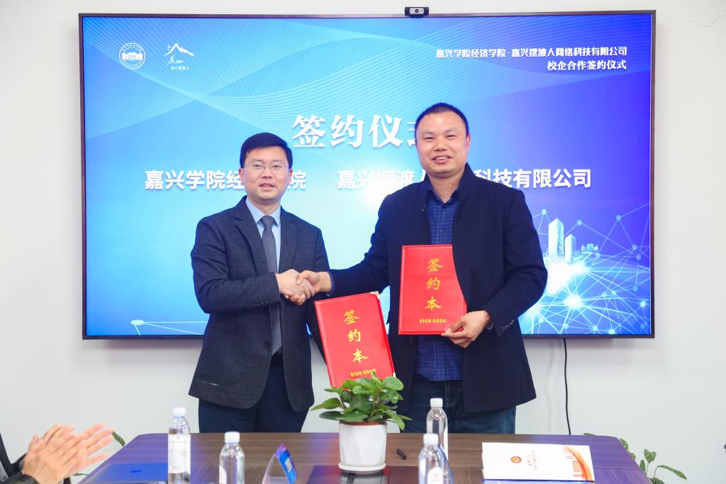 院长文雁兵和嘉兴摆渡人网络科技有限公司总经理王学成代表双方单位共同签署了《跨境电子商务人才培养校企合作协议》,并共同为“麻豆tv
