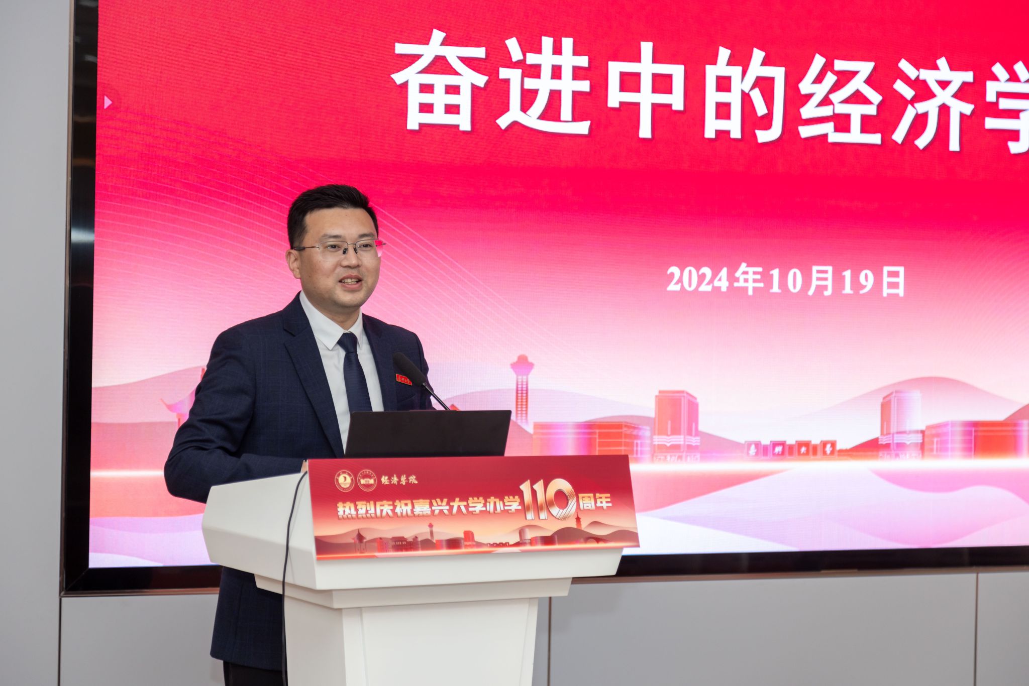 》为题深情回顾了学院的办学历史、发展现状,详细汇报了近年来的办学成果和重大突破,并介绍了学校、学院新的未来发展规划。他表示,学院百十文脉、薪火相传,110年来始终坚持与国同行、与校同生,一代代经院人不忘初心、砥砺前行;学院接续奋斗、创新有为,取得了国家级重大或标志性办学成果,获批国家一流本科专业(经济学)、金融硕士(MF)学位点、国家社科基金重大项目、教育部哲学社会科学研究重大专项、师生入选国家级重要人才工程、中国大学生自强之星并获得学科竞赛国家级奖项,科研成果、育人成果丰硕;学院朝气蓬勃、执善向上,未来将聚焦增“硕”、进“A”、育“博”、扶“马”、创“高”下一个五年发展目标,打造全省一流、全国知名、全球活跃的高水平研究型学院。希望与广大校友加强联动、促进合作、同向同行,共同建设新经院、创造新精彩、献礼新时代!