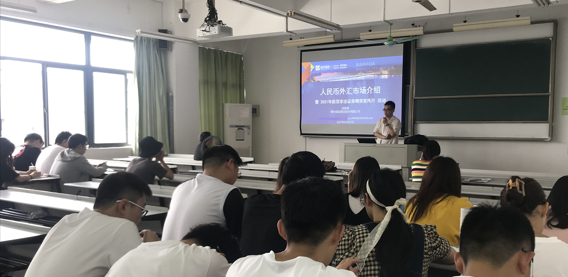 5月27日,嘉兴学院麻豆tv 金融系特邀横华国际期货股份有限公司的项寒康老师为师生进行防范非法证券期货宣传并举办外汇市场知识讲座。