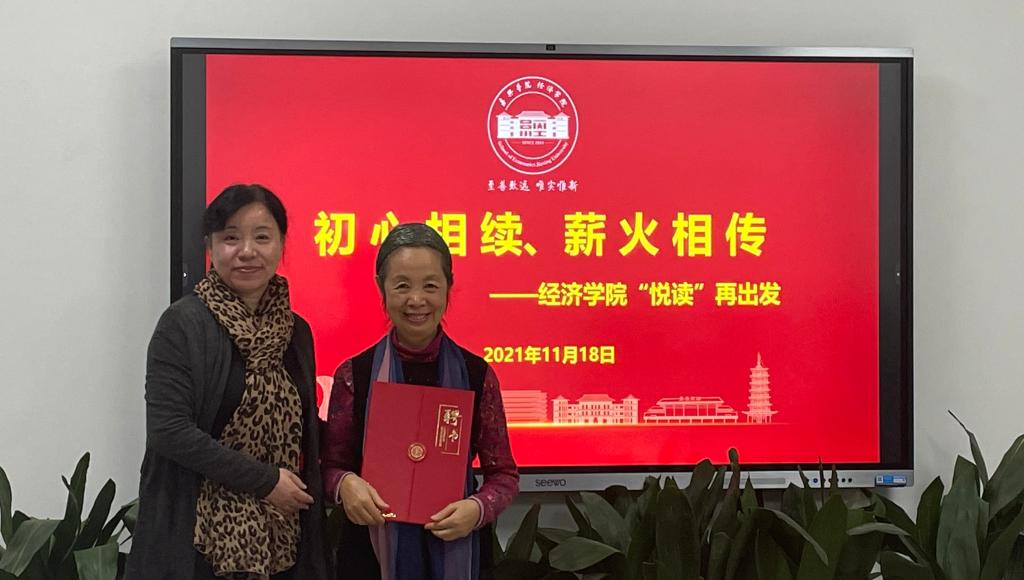 最后,学院党委书记施敏颖做总结发言。她表示,本次活动既是师生间的对话交流,也是两代“经济学人”之间的对话交流。大家一起品读、‘悦读’,共叙学院发展,这对于传承学院文化品牌,引导学生提高学习效能具有重要意义。她希望同学们牢记使命担当,接续品牌活动,认真阅读,勤于思考,在阅读中感悟国家的发展、社会的发展,进而激发青春奋进的力量,不忘初心,砥砺前行。