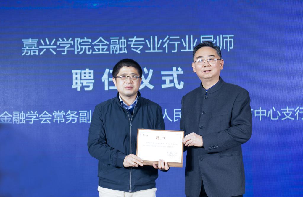 嘉兴学院校党委委员、副校长(主持日常工作)胡俊云致欢迎词。相继介绍了嘉兴学院、中国共同富裕研究院和金融专业建设情况。嘉兴学院副校长陈荣达为浙江赛智伯乐投资管理有限公司总裁陈斌,浙江洲际保险经纪有限公司原总经理曹达树,嘉兴市金融学会常务副会长、中国人民银行嘉兴市中心支行副行长汤钟尧,禾城农商银行行长杨宗伟,中国银行嘉兴分行行长许文醉,民生银行嘉兴分行行长宋秋海,财通证券嘉兴分公司总经理张奕峰,嘉兴市小微企业信保基金融资担保有限公司副总经理徐耀中,浙江平湖工银村镇银行行长岳一民等9位专家颁发我校金融专业行业导师聘书。