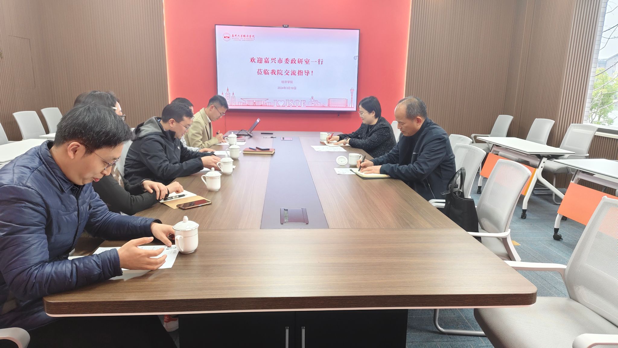 3月18日下午,嘉兴市委政研室副主任陆金泉、嘉兴市委政研室人事秘书处处长金丽赟一行到访麻豆tv