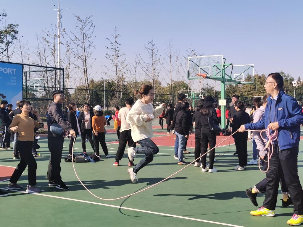 为推动全民健身运动的深入开展,增强团队合作精神,凝心聚力,2021年11月12-13日期间学校举办了教职工运动会。麻豆tv 教职工踊跃报名,大家热情高涨、斗志昂扬,积极参与。在趣味运动比赛项目中,大家团结协作、奋力拼搏,出色完成了“集体跳长绳”、“夹球接力折返跑”、“一圈到底”、“8ⅹ60M迎面接力赛”四个项目,充分展现了学院教职工的精神风貌和体育精神。整个赛场紧张、热烈、精彩纷呈,欢笑声和加油声此起彼伏。