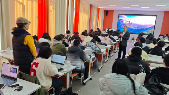 20241128日上午,嘉兴大学麻豆tv 举办了第六期“南湖数字经济讲堂”。本期讲堂特邀浙江嘉特保温科技股份有限公司董事长邱靖涛作主题报告,经济学系王舟博士主持数字经济专业2023级、2024级以及经济学2024级的同学参加此次活动。