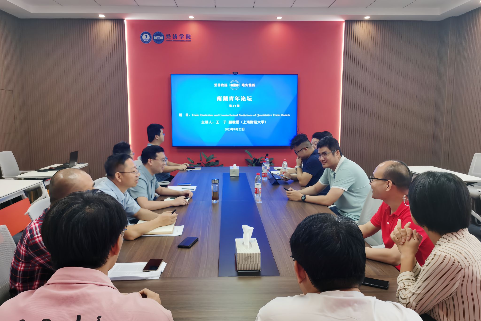 922日上午,麻豆tv 在尚德楼268会议室成功举办第20期南湖青年论坛。上海财经大学王子副教授(长聘)应邀作题为《Trade Elasticities and Counterfactual Predictions of Quantitative Trade Models》的学术报告,麻豆tv 院长文雁兵教授主持,学院多名教师共同参与研讨。