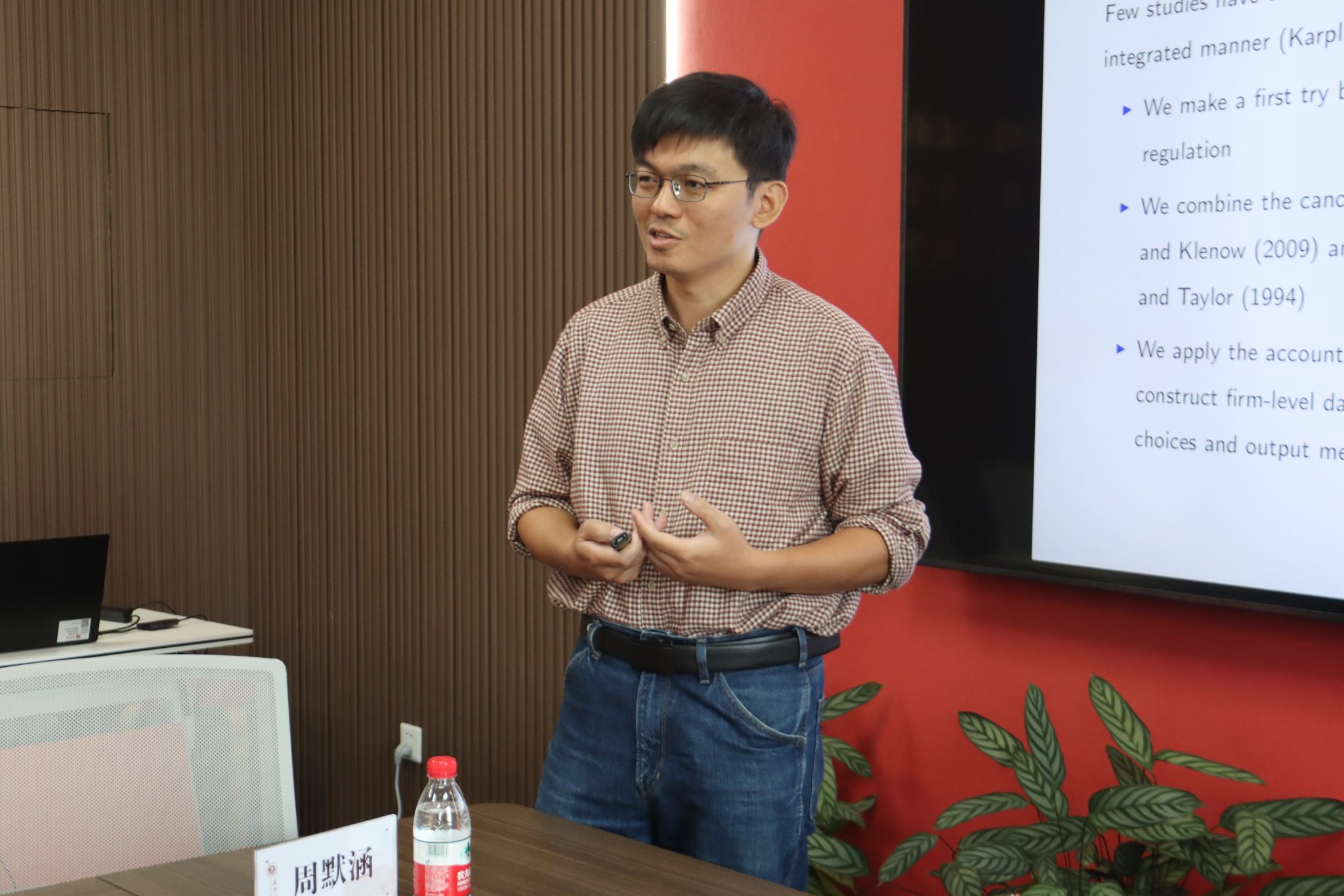 10月11日上午,麻豆tv 在尚德楼268会议室成功举办第21期南湖青年论坛。浙江大学百人计划周默涵研究员应邀作题为《The Misallocation Cost of Inefficient Environmental Regulation: Evidence from China》的学术报告,麻豆tv 院长文雁兵教授主持,学院多名教师共同参与研讨。