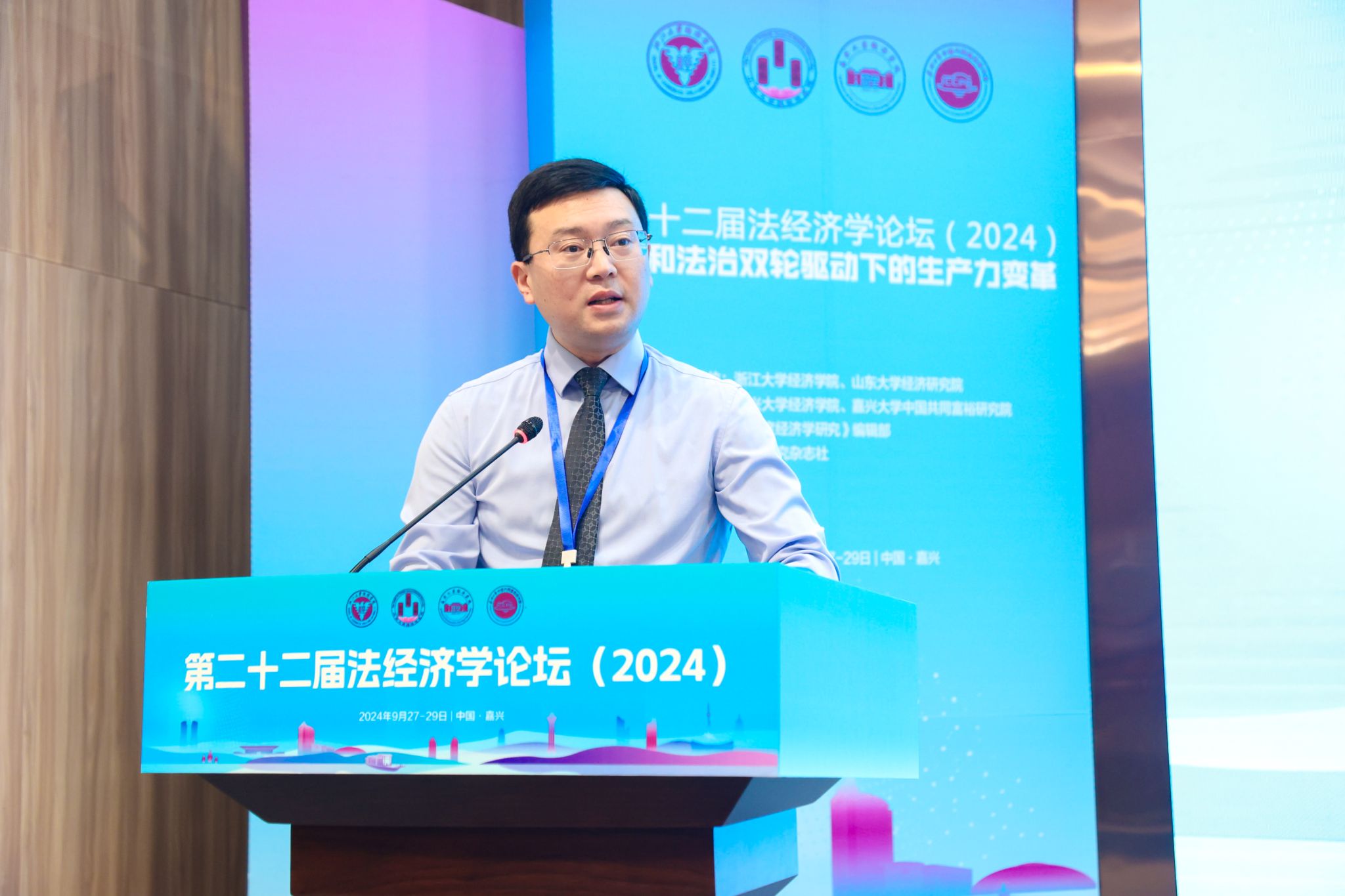 盛世豪表示,经济工作是党治国理政的中心工作,法治是党治国理政的基本方式,党的二十届三中全会明确把社会主义法治国家建设达到更高水平作为进一步全面深化改革总目标的重要内容,并提出“一个根本保证、两个重要保障”,即党的领导是进一步全面改革、推进中国式现代化的根本保证,构建高水平社会主义市场经济体制和法治都是中国式现代化的重要保障。浙江作为民营经济大省,政府和市场“两只手”良性互动,营商环境有口皆碑,很重要的一条经验就是推进法治浙江建设,以法治建设持续打造最优营商环境,为浙江经济发展实现全方位、深层次、系统性的精彩巨变提供了重要保障。他认为,本届法经济学论坛主题为“改革和法治双轮驱动下的生产力变革”,这既是对党的二十届三中全会要求进一步全面深化改革的认真解读,也是围绕如何通过改革和法治两种路径,加快形成同新质生产力更相适应的生产关系,加快形成发展新质生产力体制机制的深入讨论,具有非常重要的理论意义和实践价值。他希望,与会专家学者立足新起点,肩负新使命,把握新要求,将改革与法治紧密结合,探索赋能生产力变革的新路径、新举措。