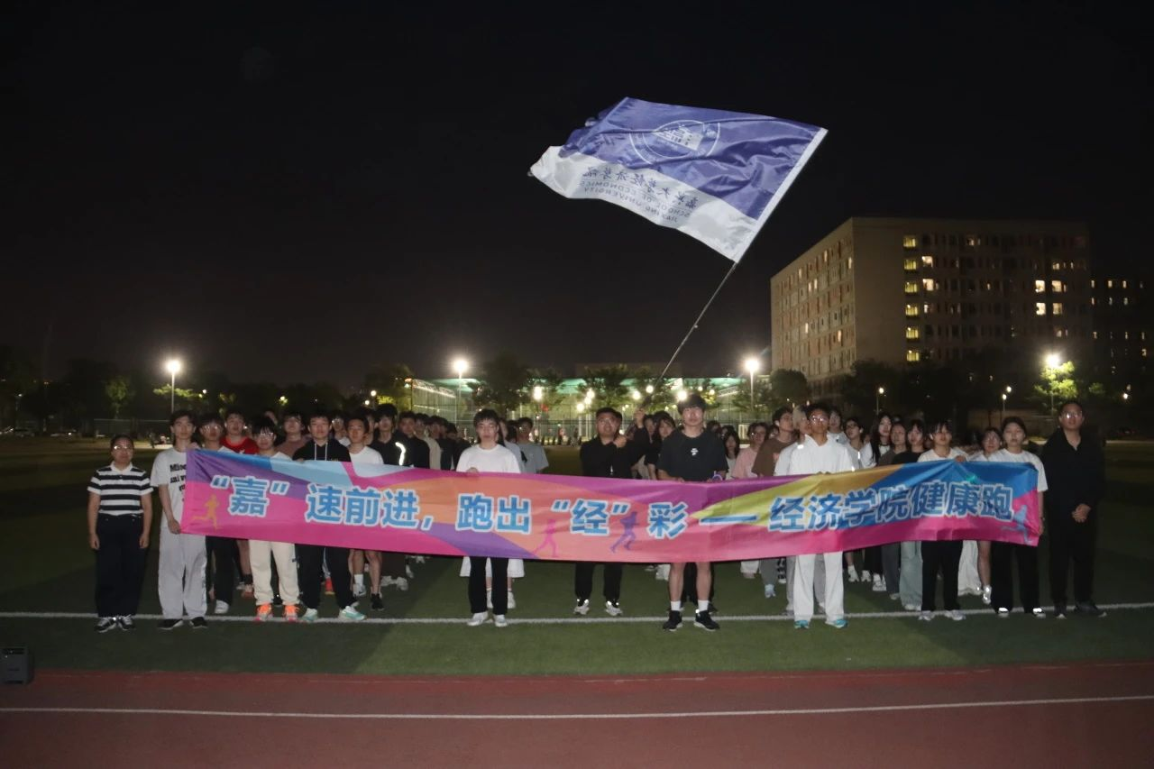 夜幕为幕布,星光作灯盏,健康夜跑邀你赴一场与活力的约会!当白日喧嚣隐去,换上跑鞋,在夜色中尽情奔跑。脚步叩击地面,奏响健康乐章;汗水随风飘散,带走满身疲惫。每一步都是对自我的挑战,每一程都是对生活的热爱。在夜跑中,遇见更坚韧的自己,感受心跳与校园脉搏同频共振。青春四月,活力全开!在夜色中绽放光芒,以运动书写属于我们的青春篇章!让我们一起撕掉“脆皮”标签 “嘉”速前进,跑出“经”彩!