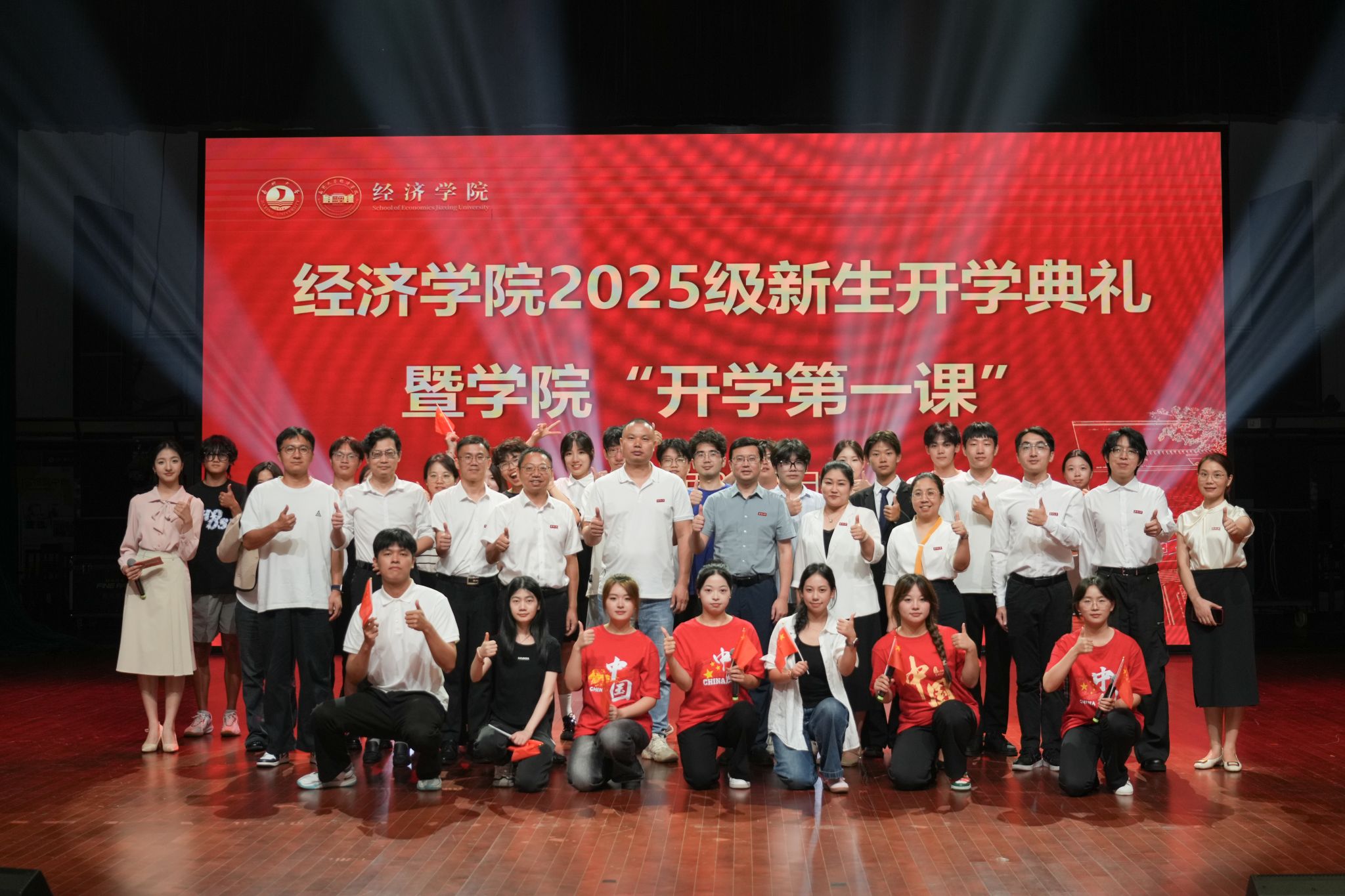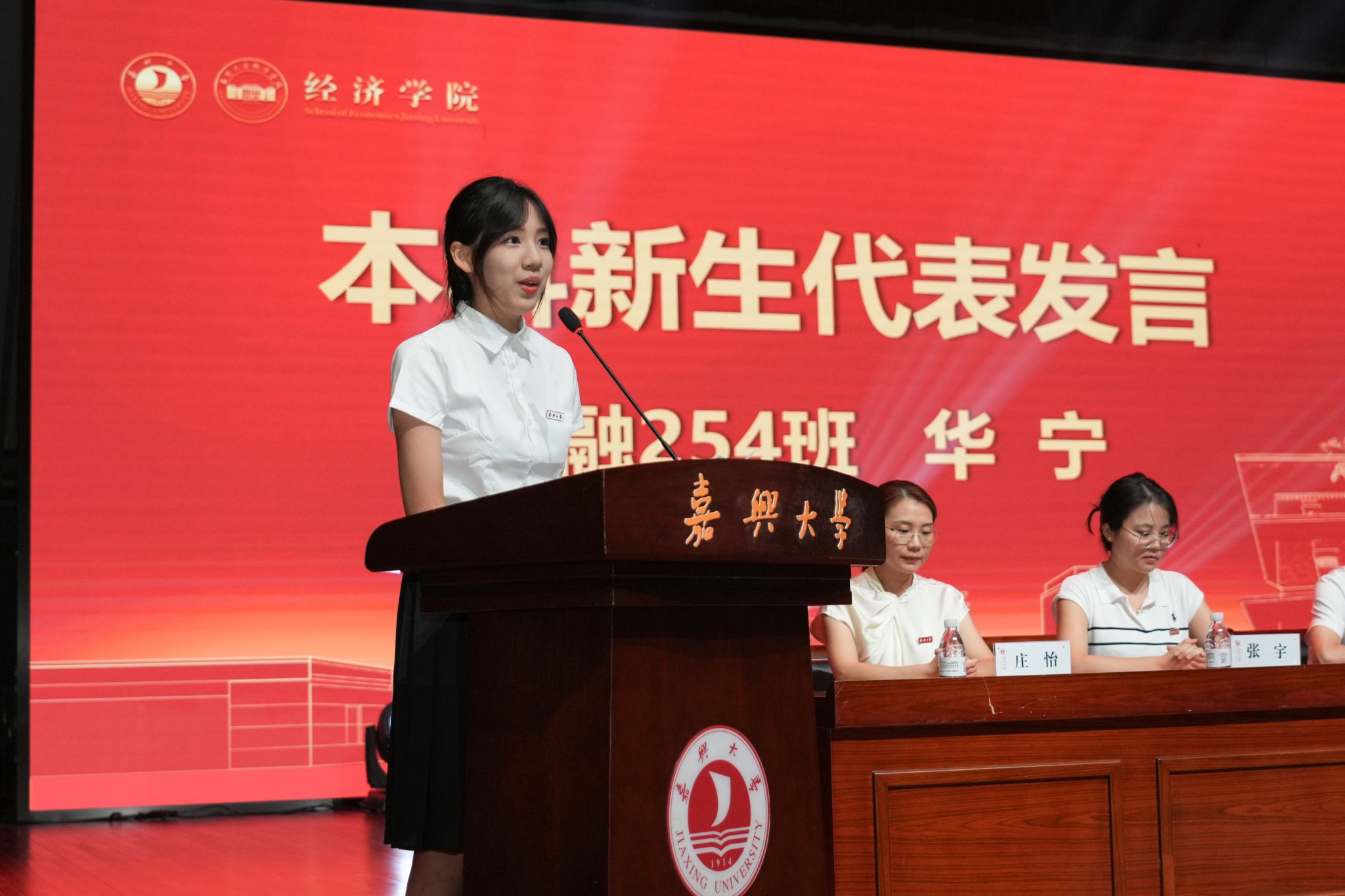 本科新生代表华宁、研究生新生代表周婧、在校生代表卢成毅先后发言,从初入学子的憧憬,到科研探索的热忱,再到成长经验的分享,三段青春故事汇聚成经院学子的共同心声:以行动定义青春,用奋斗回应时代。