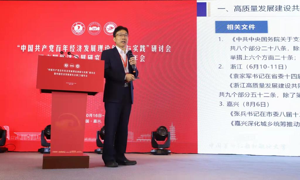 、中国共同富裕研究院联合承办的“中国共产党百年经济发展理论创新与实践”研讨会暨中国经济发展研究会第23届年会在浙江嘉兴成功举办。来自我校及中央民族大学、南开大学、复旦大学、南京大学、武汉大学、山东大学、四川大学、中国人民大学、西北大学、同济大学、西南财经大学等40多所高校百余名专家学者参会,围绕“中国共产党百年经济发展理论创新与实践”展开学术交流,为中国经济立足新时代、把握新阶段、构建新格局提供智力支持。主题发言环节,参会专家围绕年会主题做了精彩发言。本期刊登卢新波教授的发言内容。