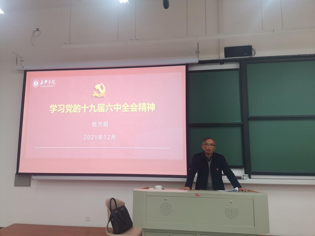 2021年12月9月下午,校党委副书记钱方明来院进行党的十九届六中全会精神宣讲,宣讲会由学院党委书记施敏颖主持,全院教师及学生代表参加了本次宣讲活动。