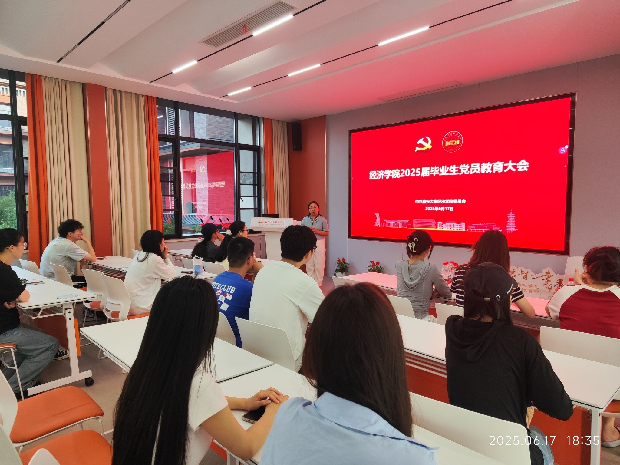 于6月17日召开“初心如磐 清风启程行稳致远”为主题的2025届毕业生党员教育大会。学院党委副书记陈晶晶及全体2025届毕业生党员参会,会议由辅导员沈芳主持。