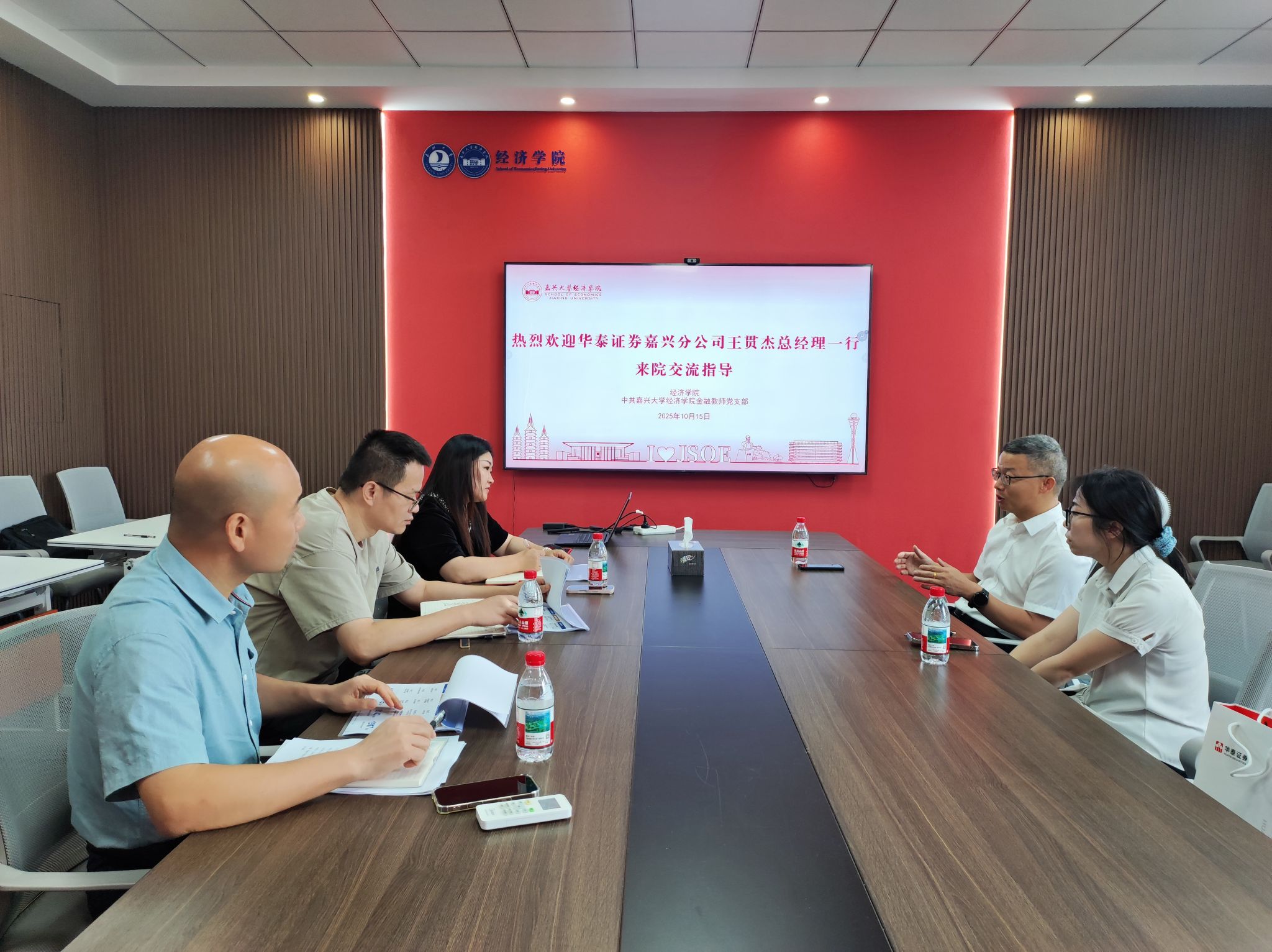 金融教师党支部与华泰证券股份有限公司嘉兴分公司举行座谈交流会。华泰证券嘉兴分公司总经理王贯杰、麻豆tv