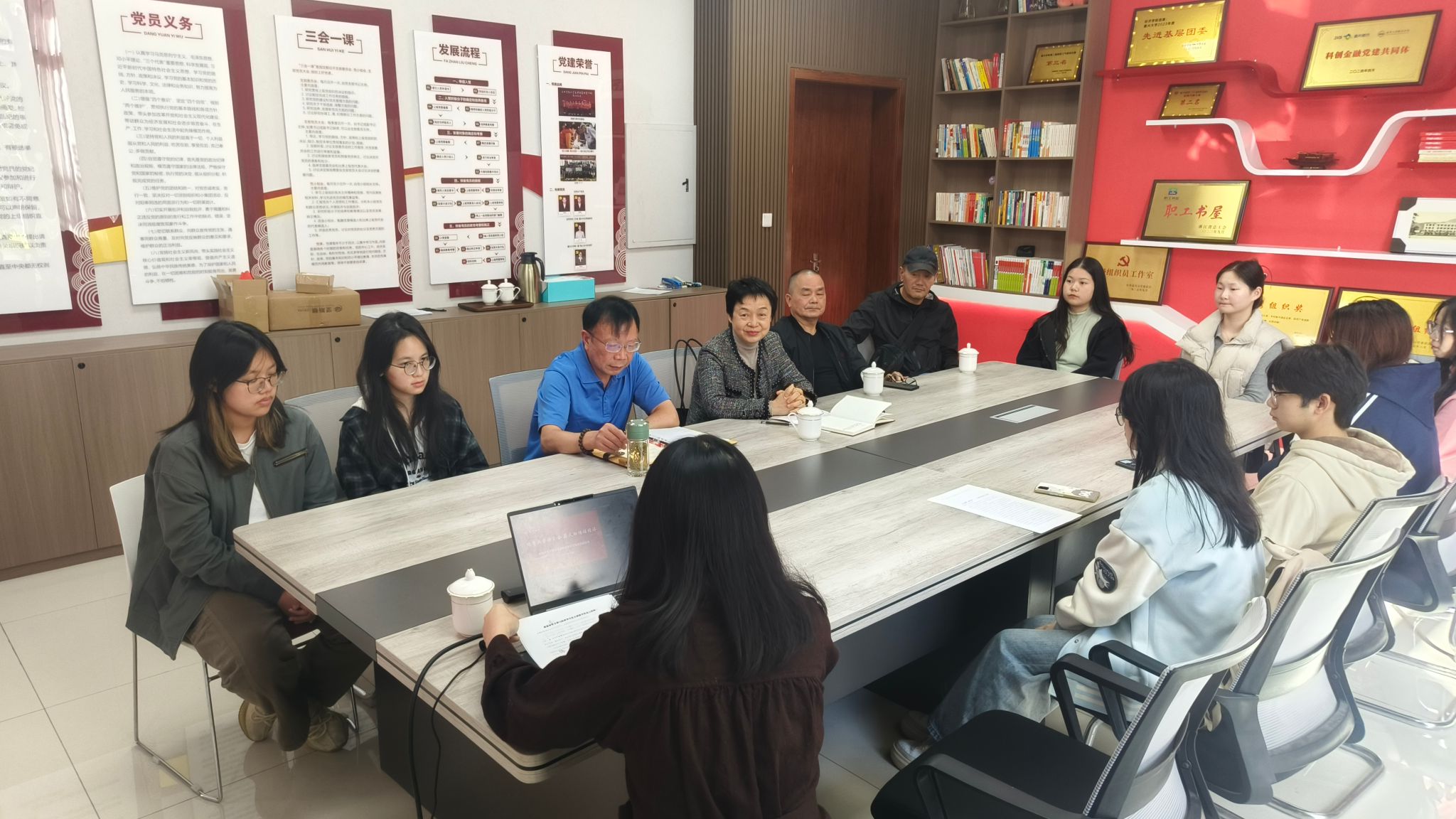 互动交流环节成为活动亮点。离退休教师结合亲身经历,讲述不同历史时期践行党的理论的故事,用岁月沉淀的智慧为青年指引方向;青年学生积极提问,围绕专业学习、职业规划与理论实践结合等话题与前辈深入交流。现场氛围热烈,思想碰撞中凝聚起老少同心、共促发展的共识,实现“银发力量”与青春活力的同频共振。