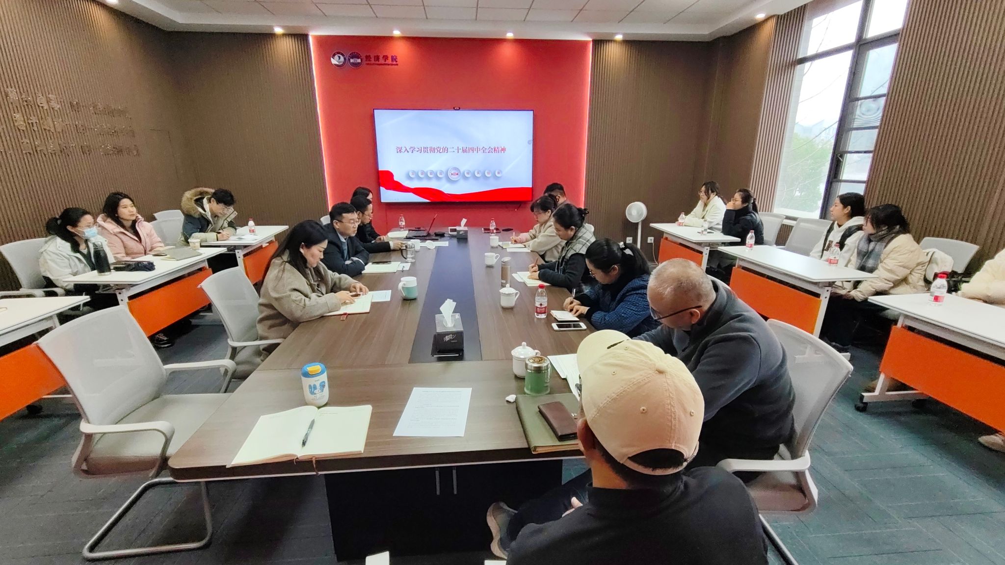 在尚德楼268会议室组织召开学习贯彻党的二十届四中全会精神专题宣讲会。学院院长文雁兵教授应邀作宣讲报告,学院师生代表齐聚一堂、认真参会学习。