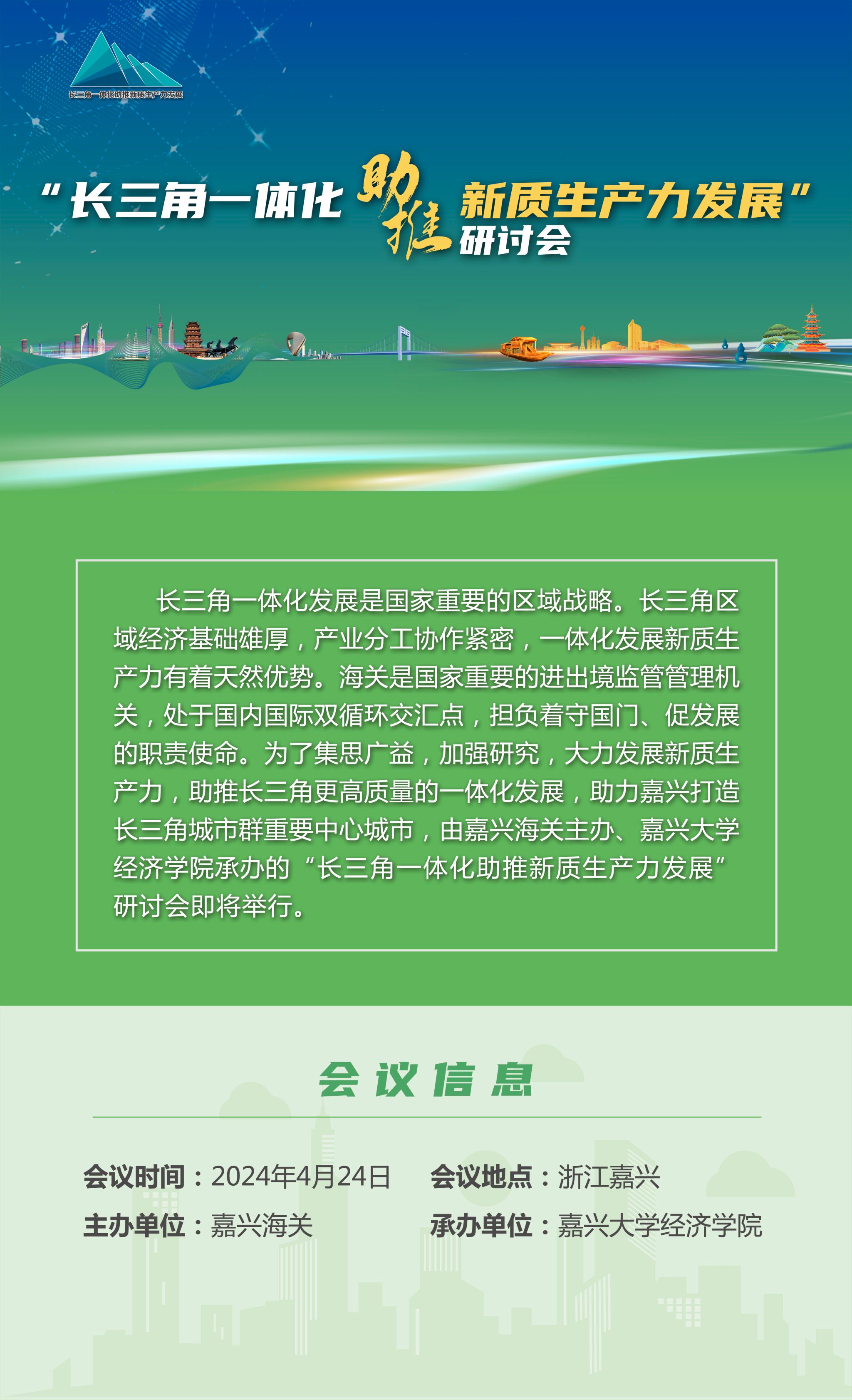 【会议通知】“长三角一体化助推新质生产力发展”研讨会