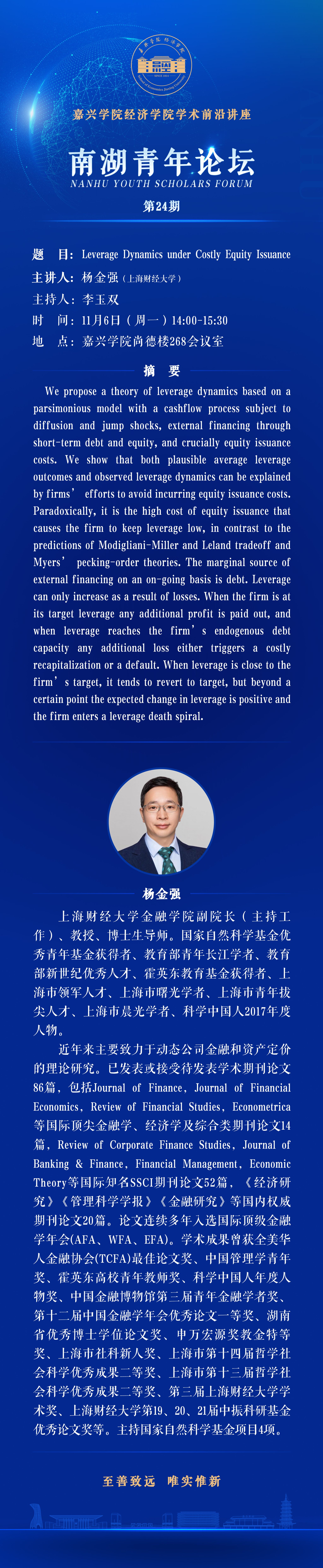 南湖青年论坛No.24:Leverage Dynamics under Costly Equity Issuance